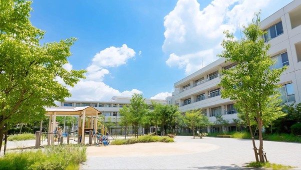 Une cour d’école végétalisée. – Sebelas Studio via Vecteezy