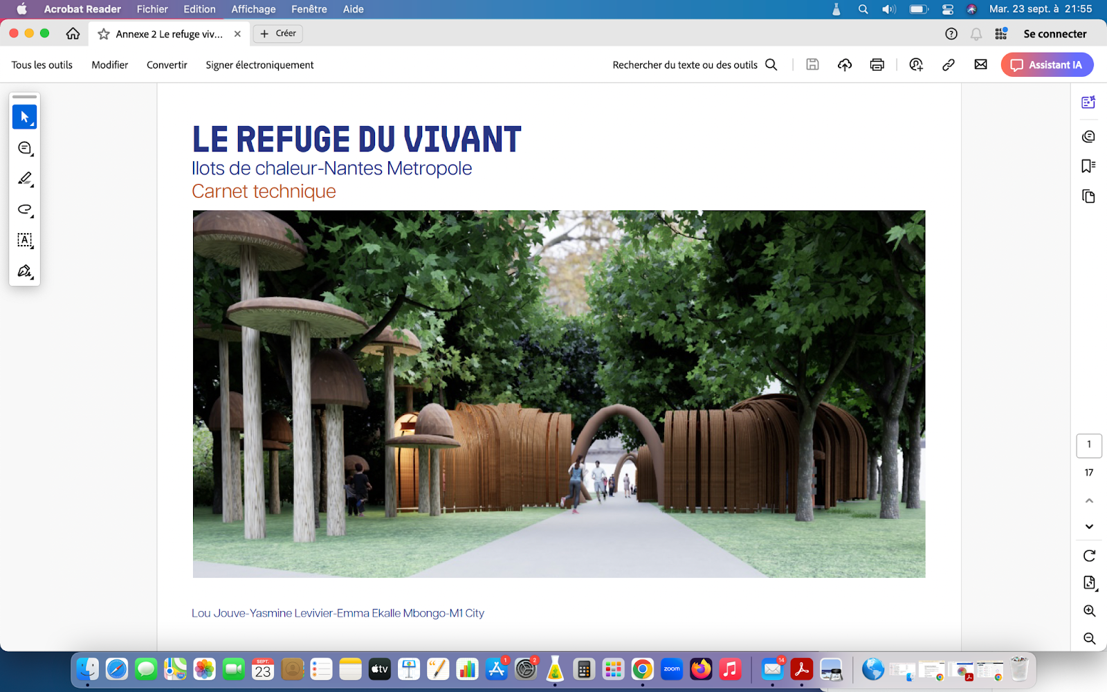 Ce projet a été pensé par les designer Lou Jouve, Yasmine Levivier et Emma Ekalle Mbongo, toutes trois étudiantes au City Design Lab de L’École de design Nantes Atlantique. Ce laboratoire de recherche explore par le design les différents enjeux liés aux territoires et aux villes, en particulier leur transformation et leur régénération spatiale, sociale, environnementale et économique. Il aborde différents thèmes, sujets et questions par le prisme des limites planétaires pour favoriser les conditions d’habitabilité de la planète, notamment sociales, climatiques, de biodiversité, de ressources et d’énergie dans une dimension d’intérêt général et de justice sociale et spatiale.