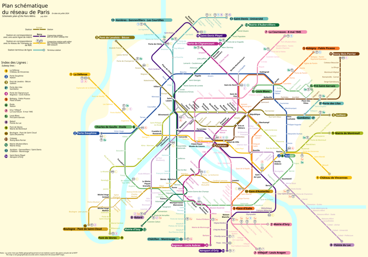Carte schématique du métro parisien juillet 2024 ©Creative Commons
