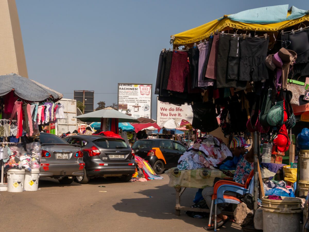 Un marché de vêtements d’occasion à Accra. © Wikimedia Commons