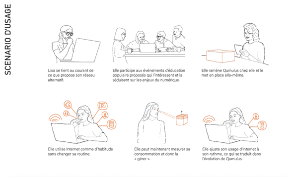 Qumulus s’adresse à celles et ceux qui veulent s’extraire du tout connecté sans renoncer au numérique. À celles et ceux qui, comme Lisa – personnage archétypal du projet – souhaitent utiliser Internet autrement. Mesurer sa consommation avec sérénité et gagner en conscience sans se couper du monde.