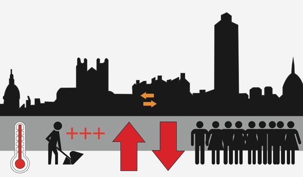 L’espace souterrain a longtemps été délaissé, notamment en raison de l’image négative qu’il renvoie. Symbole de l’enfer pour les uns, espace sacré interdit pour les autres, notre sous-sol est un lieu qui inspire les croyances. Aujourd’hui, on a tendance à enfouir ce qui ne doit pas encombrer la ville, comme les réseaux de transports ou les parkings, faisant de certaines villes de véritables gruyères. Et pourtant, nos sous-sols regorgent de qualités non négligeables pour bâtir des villes durables. A l’heure du catastrophisme ambiant, l’espace souterrain constitue une enveloppe protectrice de choix, plus propice à résister aux catastrophes : abri contre les tremblements de terre, contre les variations du climat (la géothermie permettant d’avoir une température constante), etc. Dans une ville durable qui par définition devra être résiliente, un retour vers les entrailles de la terre semble donc inévitable. Et les qualités de cet espace ne s’arrêtent pas là : pas besoin d’aller bien loin pour le trouver, le sous-sol est présent partout, il suffit de creuser !